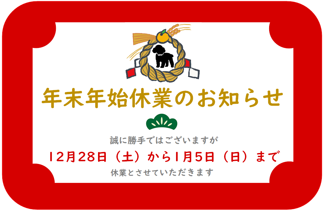 休業日のご案内 2024.12.24 1月6日(月)より通常営業となります。なお、利用者様におかれましては休業中も緊急時の連絡先やLINEは繋がりますのでご安心ください。ご不便をおかけしますが、何卒よろしくお願いいたします。