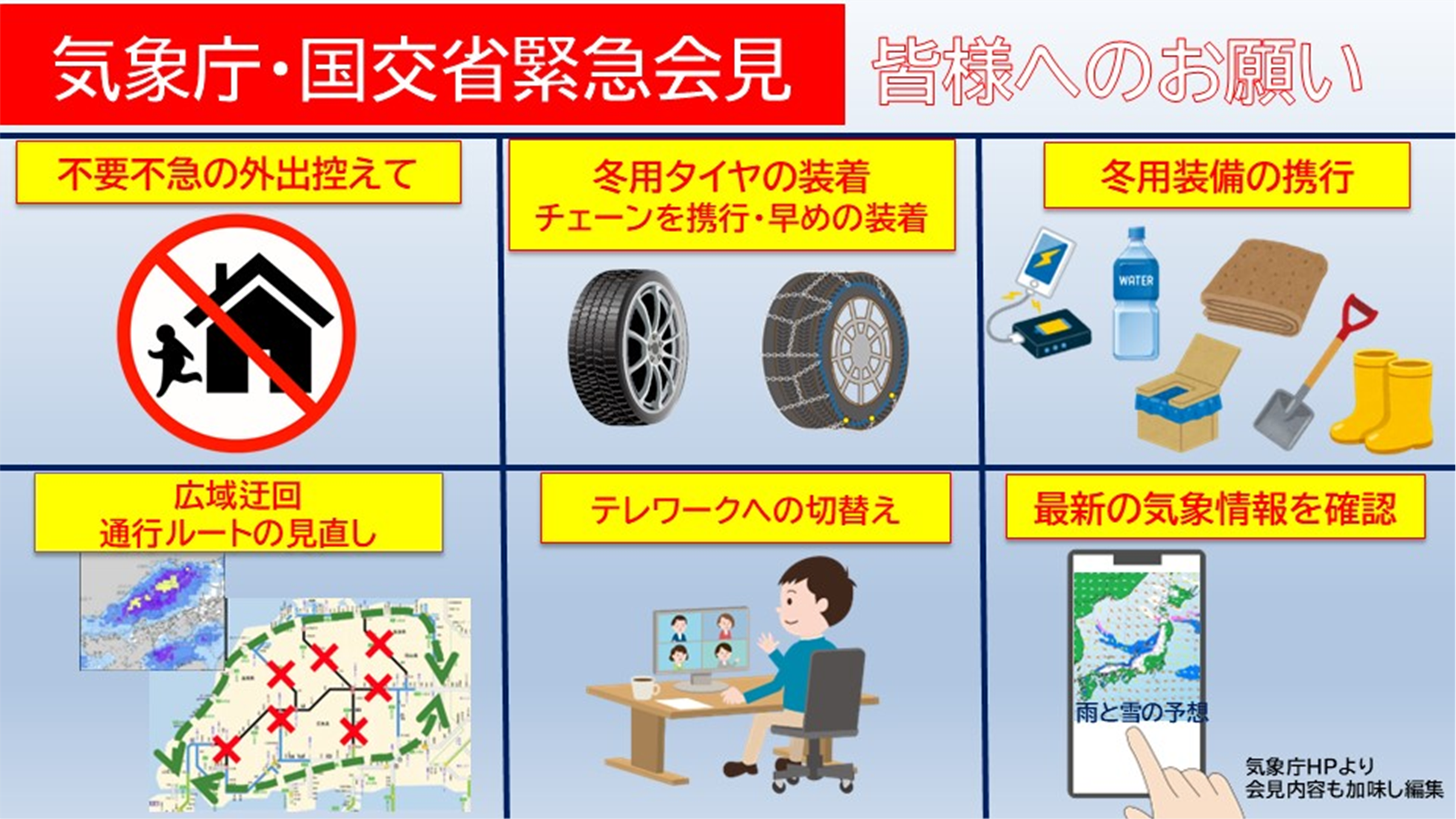 日本海側だけでなく、太平洋側の山地でも大雪となり、平地でも大雪となる恐れがあります。