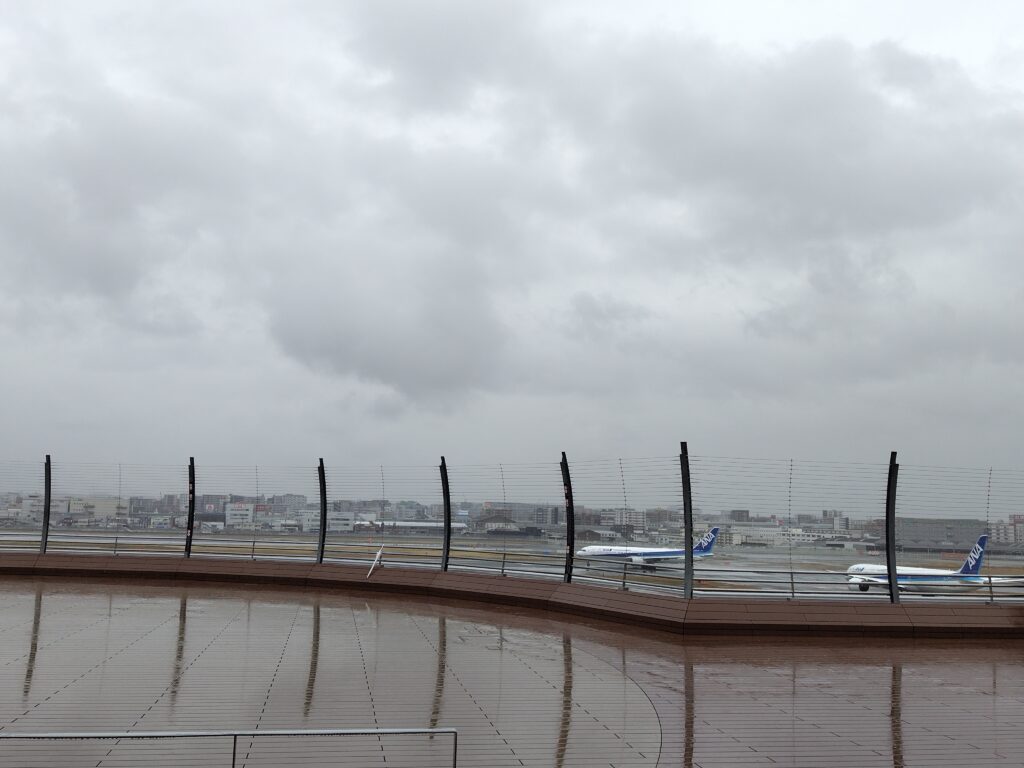 考えてみれば、見送られることはあっても見送る側の経験はほとんどないので、生憎の雨ではありましたが展望デッキに出てみました。