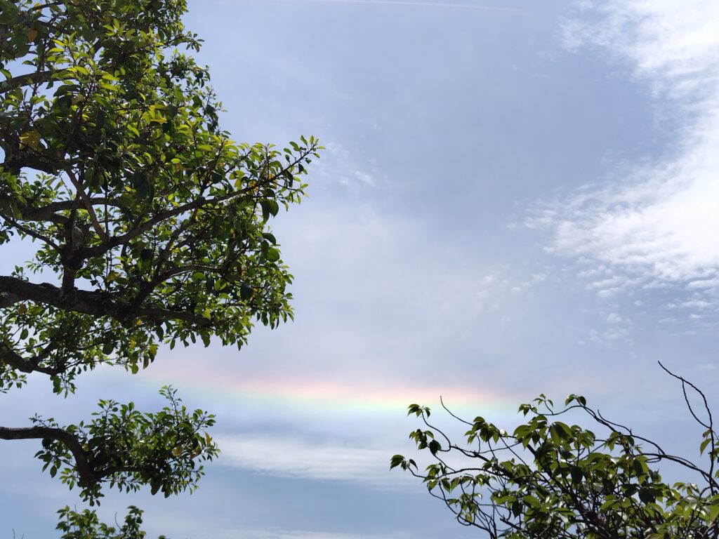 太陽の下方に水平方向に虹色の帯状に見える珍しい自然現象で、幸運を呼ぶとも言われています。これは、上空の氷の結晶が太陽の光を屈折させることで発生し、太陽高度が高い昼間に見られやすいです。