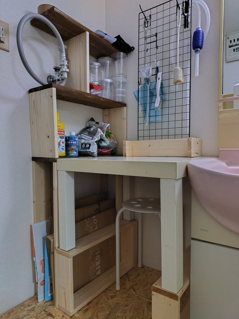 DIY工房 2024.09.192024.09.25 PLP(ポジティブライフプランナー)イトウの汗だく作業室 【タンクレス風トイレ】いたって普通のトイレをイメチェントイレタイムが癒しの時間に♡ 【洗濯機置き場大改造】洗面台の高さに合わせて制作これで水槽のお手入れも超楽チン♪ 【カフェ風(?)テーブル】まったく同じものを2台制作単体でも並べても使えて大活躍 【シューズラック】玄関の壁の凹みの幅に合わせて制作奥行が浅いため角度をつけて工夫